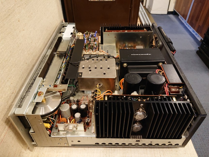 Det är roligt att kunna presentera denna pärla från Marantz otroligt populära 22-serie. Ett praktexemplar som jag hoppas bilderna kan visa. Endast en ägare och frontplasten sitter fortfarande kvar. Inuti ser den ut som ny . Han var resemontör och spelade på sin hifi bara då och då när han var hemma. Om det var yrket eller något annat som förstörde äktenskapet vet jag ej, men skilsmässa blev det och hifi-anläggningen splittrades.