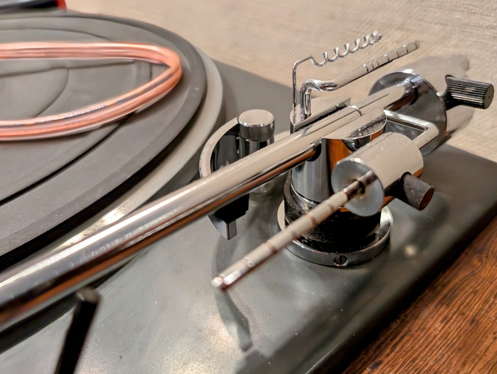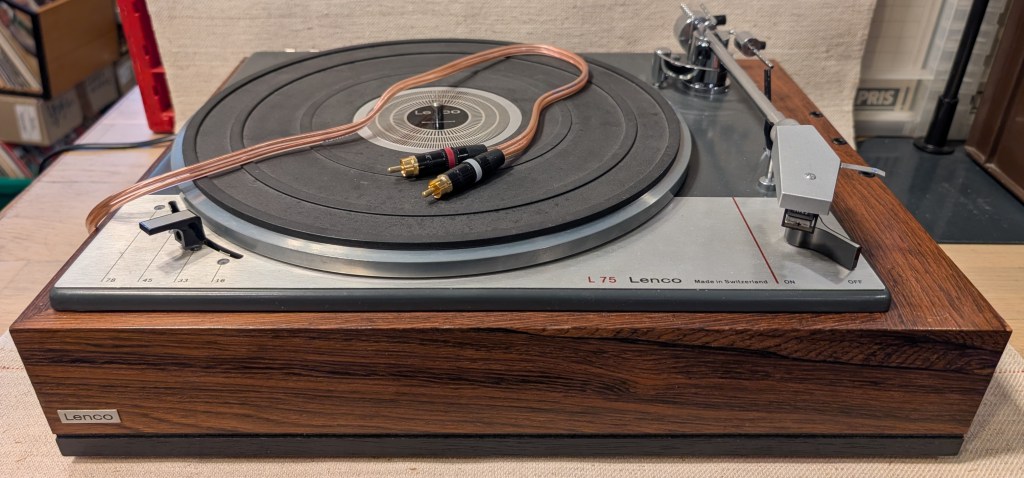 Denna spelare har fått mycket puts och kärlek. – Mellanhjulet är rengjort och gummibanan renoverad. Spindeln rengjord och smord. Motorn renoverad och lagren smorda. Spelaren är mekaniskt helt tyst. – Lenco original tonarmen har varit demonterad, rengjord och polerad. Nya knivlager på plats. Motvikten renoverad med ny gummiupphängning. – Subchassit renoverat och dämpat. – Ny elkabel monterad enl. EU-standard. – Ny Hi.Res. audiokabel monterad. – Tonarm och pick-up är inställt och balanserat för optimalt bästa ljud. Shure pick-up M-75 med ny G-nål. Fjädringsmjuk och passar bra till den renoverade tonarmen.