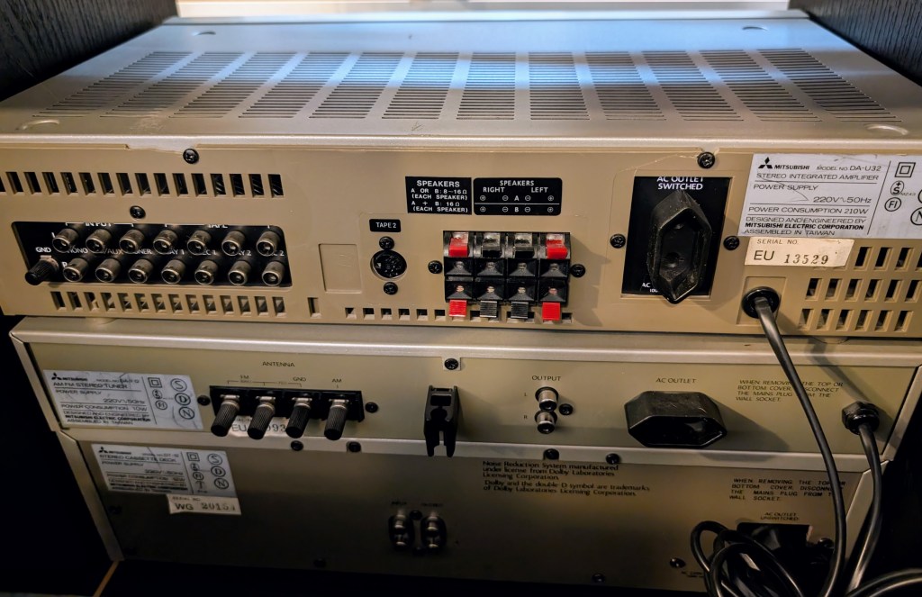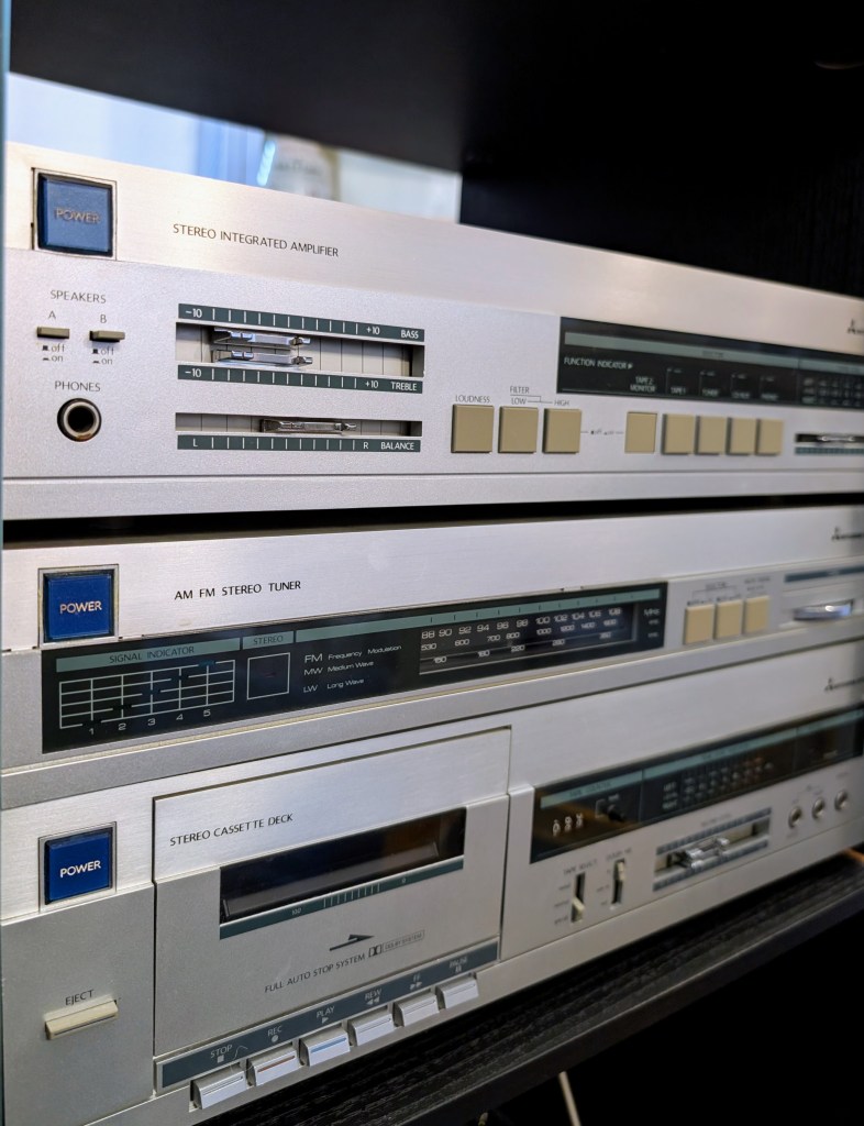 Idag kanske Mitsubishi är mest känt för sina bilar, men under denna period tillverkade de seriöst välbyggda och ofta underskattade ljudutrustningar. Detta system är ett utmärkt exempel på en prisvärd anläggning inkl. en snygg glasmöbel från mitten på 80-talet. Driftsäker och servicevänlig hifi från Mitsubishi.